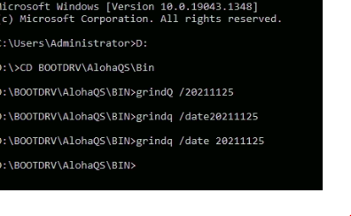 -cd bootdrv > alohaqs >bin >grindq /data (date)